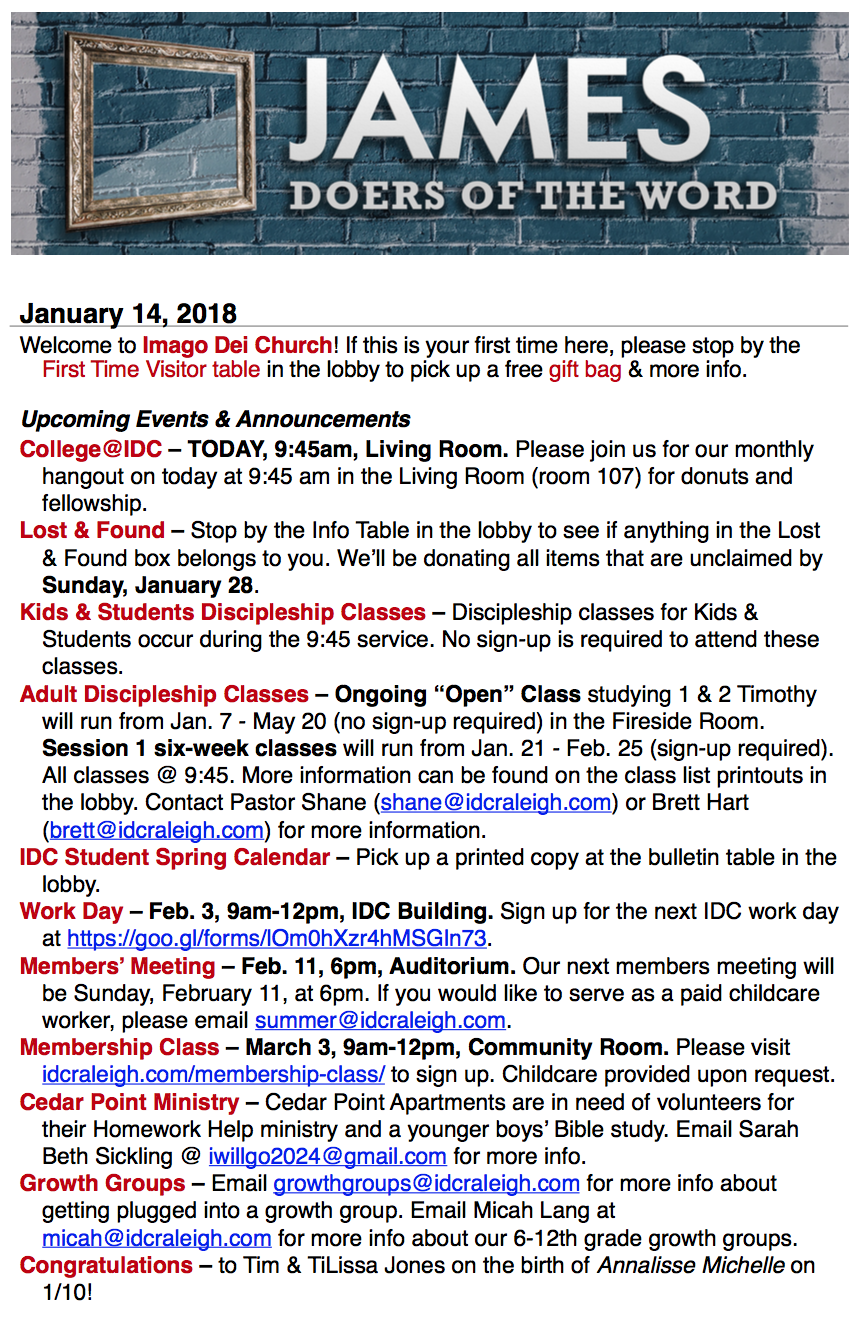 Faith and the Trials of Life – James 1:2-12 IDC Admin January 14, 2018 James 1:2-12 View this week’s worship guide Podcast: Play in new window | Download Sermon Guides, Podcast, Doers of the Word (James) IDC AdminFaith and the Trials of Life – James 1:2-1201.14.2018 Share this post